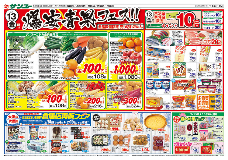 日曜日も サンユーコジカ会員様以外も冷食半額!