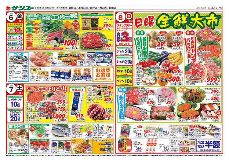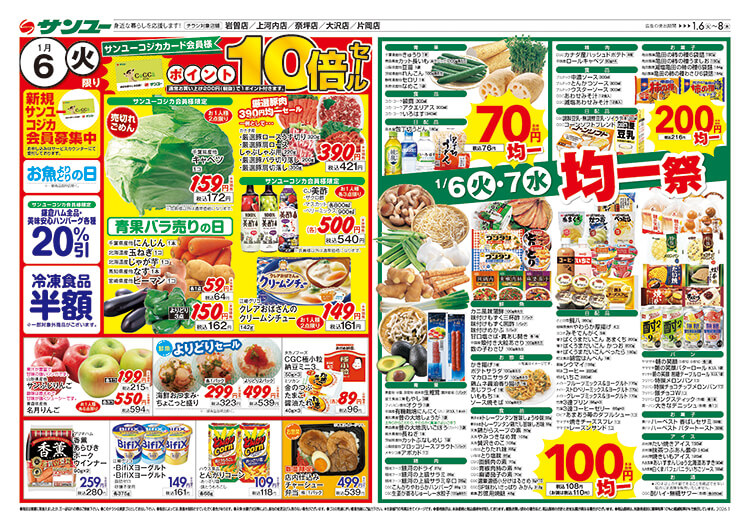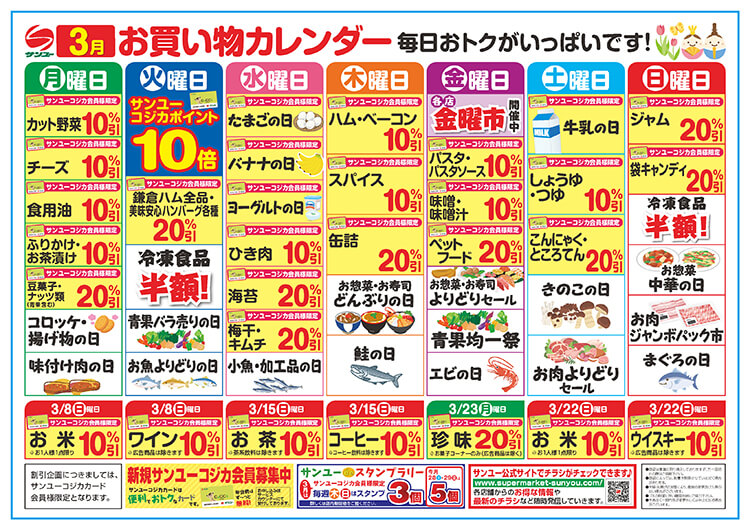 日曜日も サンユーコジカ会員様以外も冷食半額!